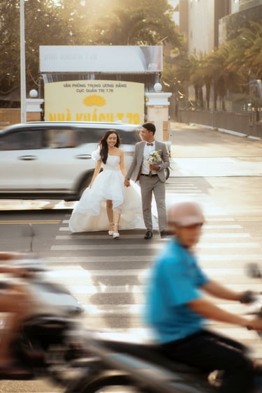 Nha Trang không chỉ có biển, mà còn có những con phố sôi động, những quán cà phê nhỏ xinh, những góc phố cổ kính... Tất cả đều có thể trở thành bối cảnh tuyệt vời cho concept chụp ảnh cưới đường phố.