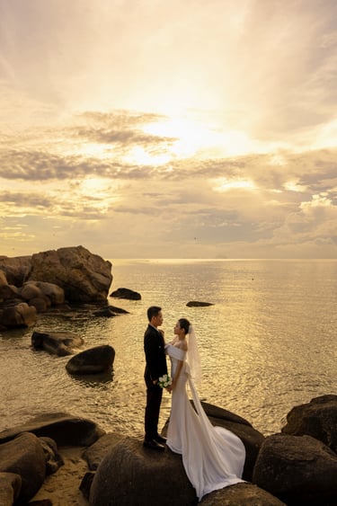Bình minh trên biển Nha Trang luôn là một trong những khoảnh khắc đẹp nhất trong ngày, với ánh nắng vàng dịu nhẹ và không gian biển trời bao la. Cùng người mình yêu chào đón ánh mặt trời của ngày mới trước khung cảnh thiên nhiên tuyệt đẹp với những cử chỉ tình tứ, những ánh mắt trao nhau giữa không gian rộng lớn của biển trời sẽ tạo nên những khoảnh khắc đáng nhớ trong bộ ảnh cưới của bạn.