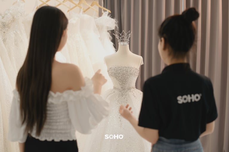 Với đội ngũ chuyên viên tư vấn giàu kinh nghiệm và tận tâm, SOHO cam kết mang đến cho bạn trải nghiệm mua sắm tuyệt vời nhất. Chúng tôi sẽ lắng nghe mong muốn của bạn, tư vấn kỹ lưỡng về kiểu dáng, chất liệu, màu sắc phù hợp nhất với vóc dáng và sở thích cá nhân, giúp bạn tìm thấy chiếc váy cưới hoàn hảo, tôn lên vẻ đẹp rạng ngời và tự tin trong ngày trọng đại.